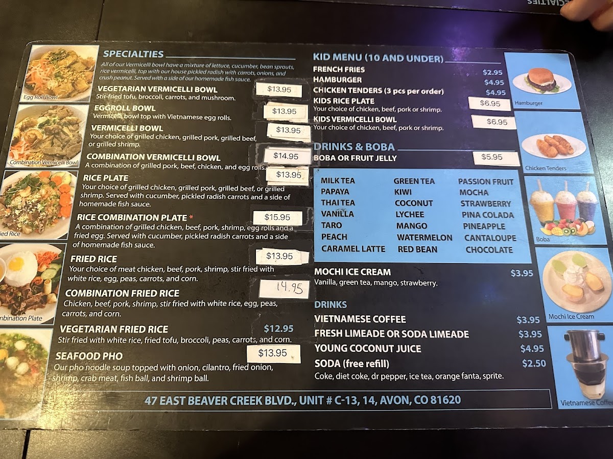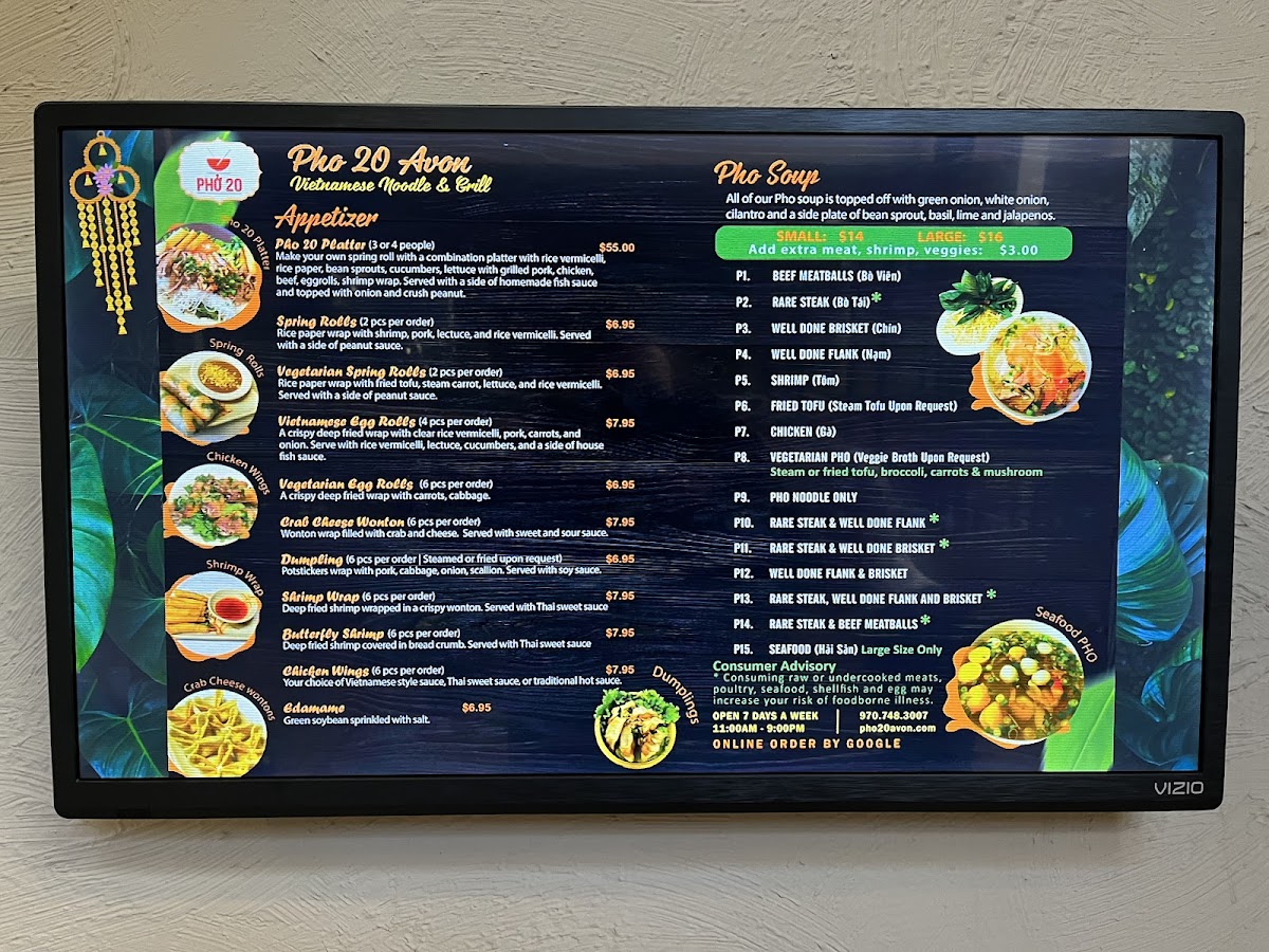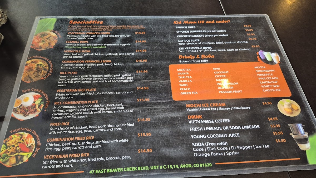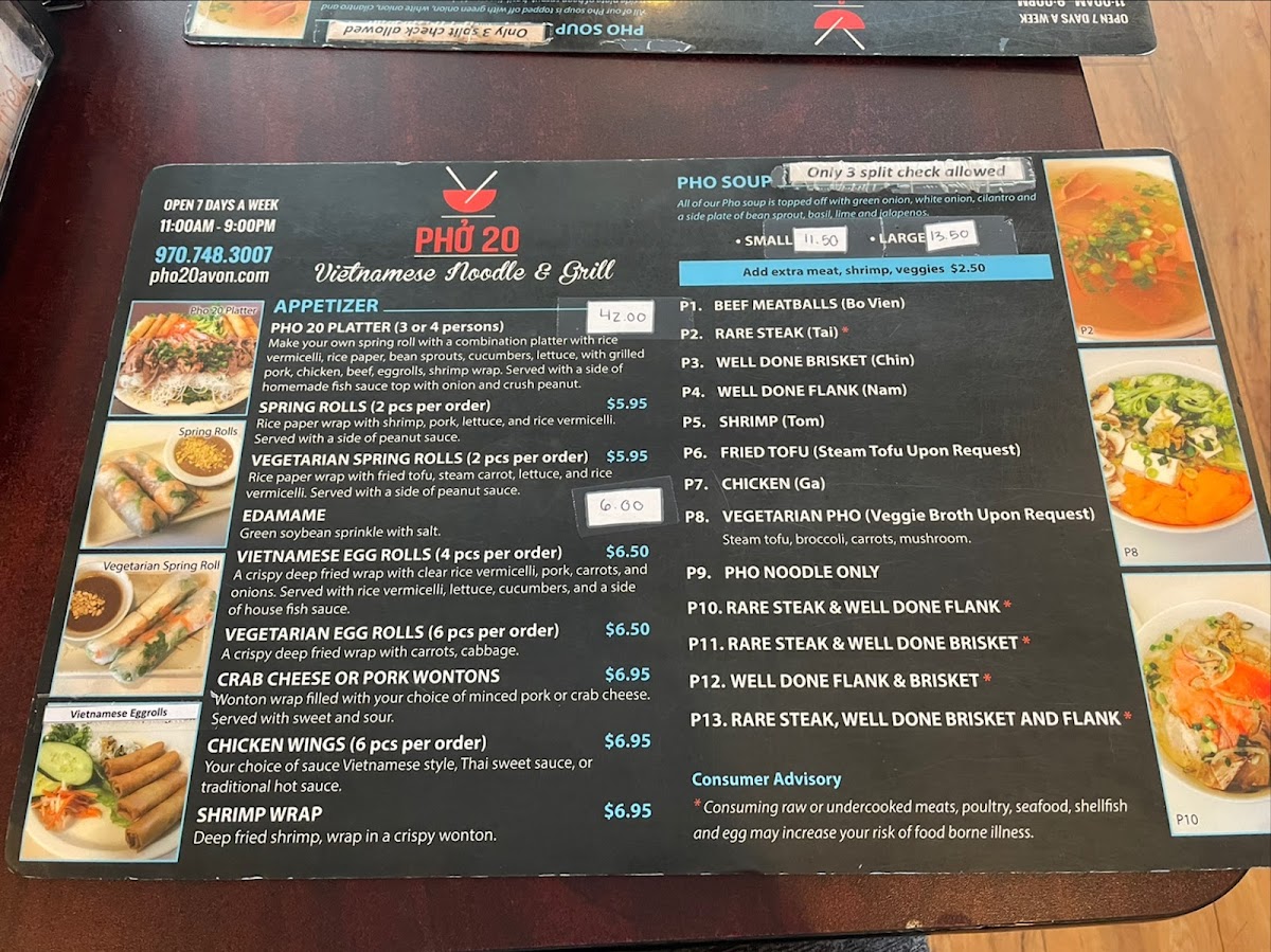 When you walk into Phở 20, you're in for a treat! This cozy spot in Avon, CO, is all about bringing you authentic, flavorful Vietnamese pho and other comforting dishes. Whether you're a pho enthusiast or new to the world of Vietnamese cuisine, the Phở 20 Menu has something to satisfy your cravings. From the classic beef pho with tender cuts of meat to the rich, aromatic broths that simmer for hours, each dish promises a burst of flavor. The menu also offers a variety of rice dishes, fresh rolls, and even vegetarian options, making it a great choice for everyone. If you're looking for a warm bowl of pho to comfort you on a chilly day, Phở 20 is the place to be.